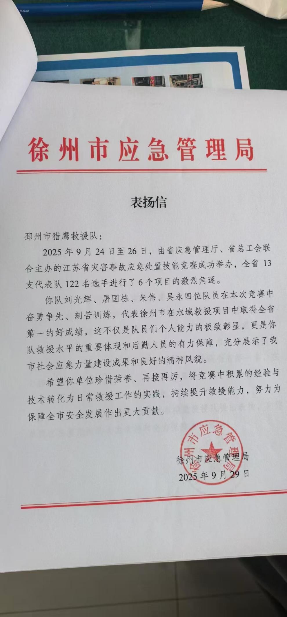 此次获奖,不仅是对猎鹰救援队四名队员个人能力的褒奖,更是对整个邳州平安志愿者协会及猎鹰救援队专业化、规范化建设成果的权威认证。它证明了猎鹰救援队是一支“拉得出、冲得上、打得赢”的过硬队伍,是守护邳州人民生命财产安全不可或缺的民间中坚力量。