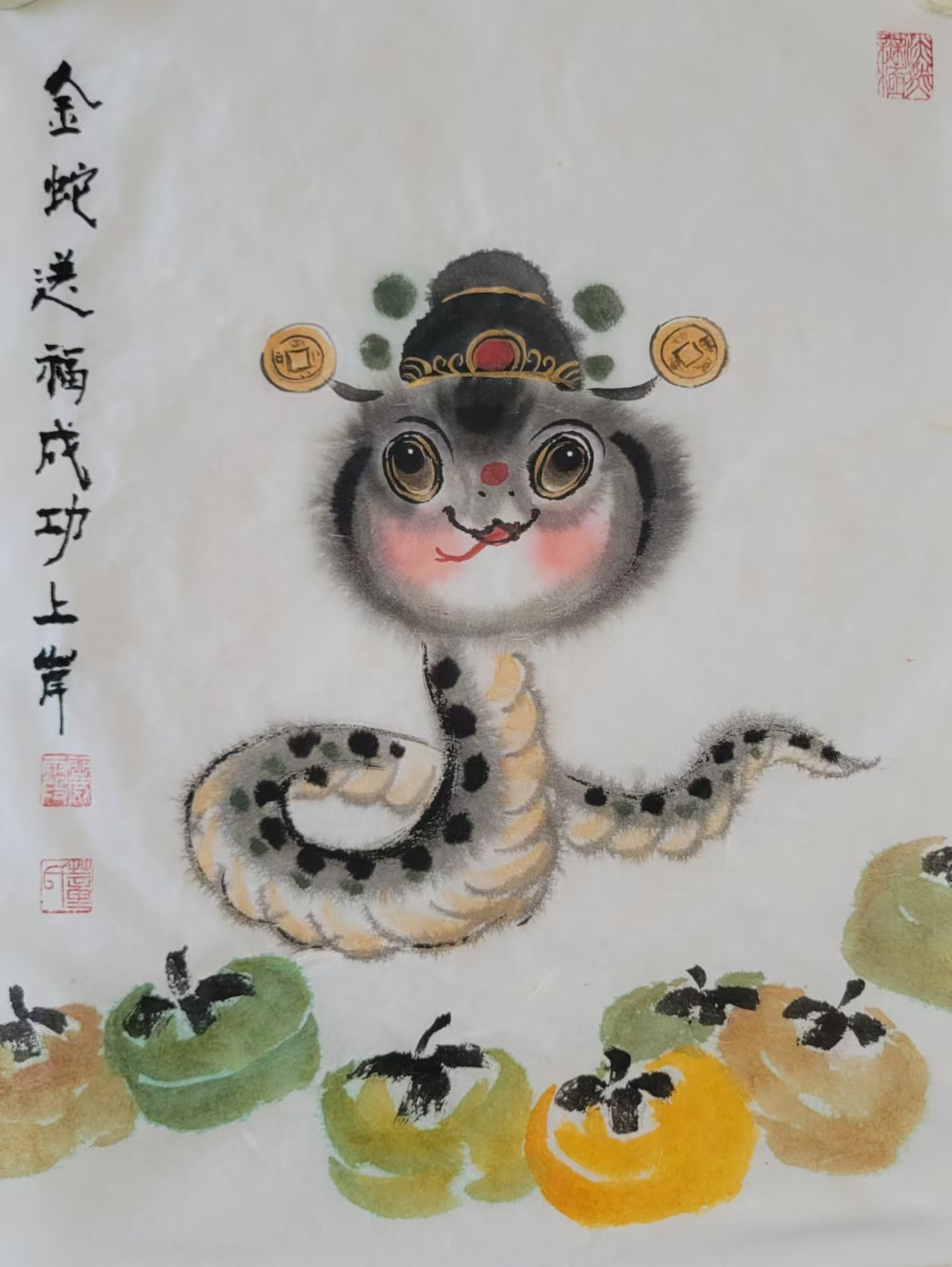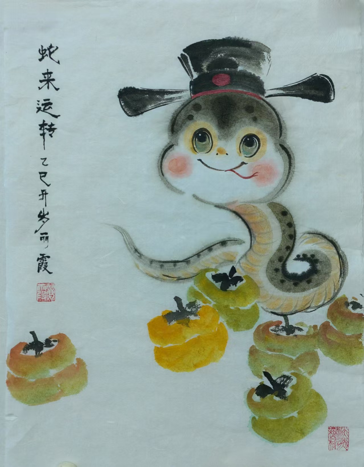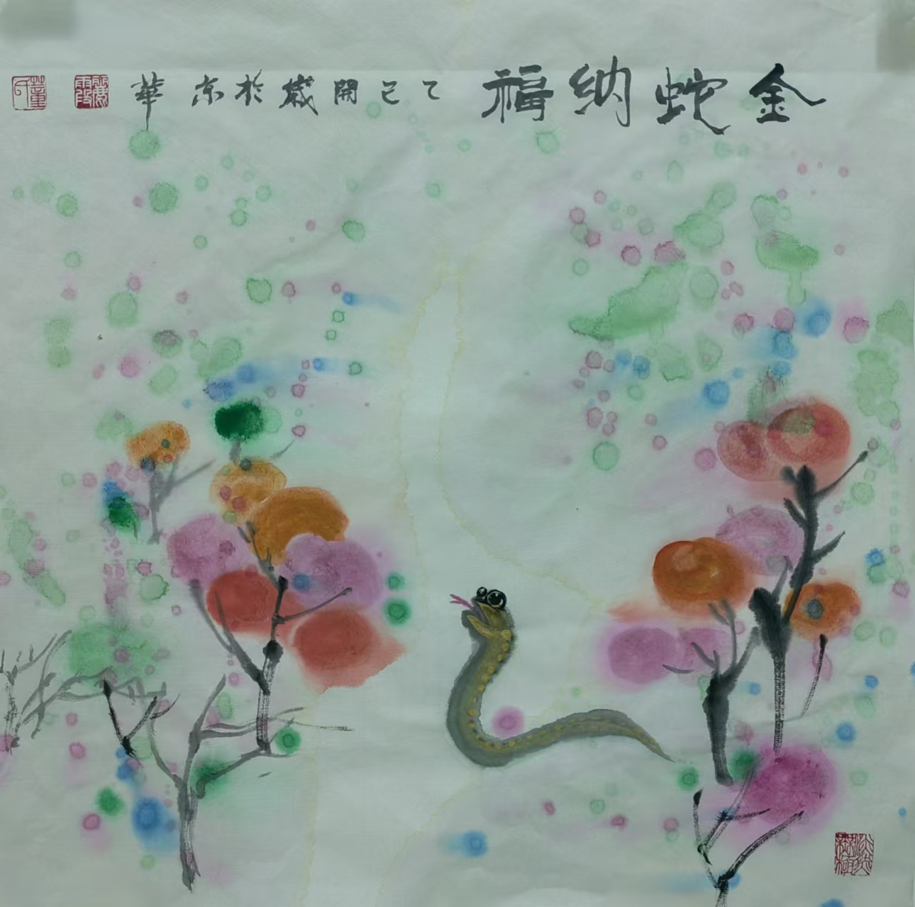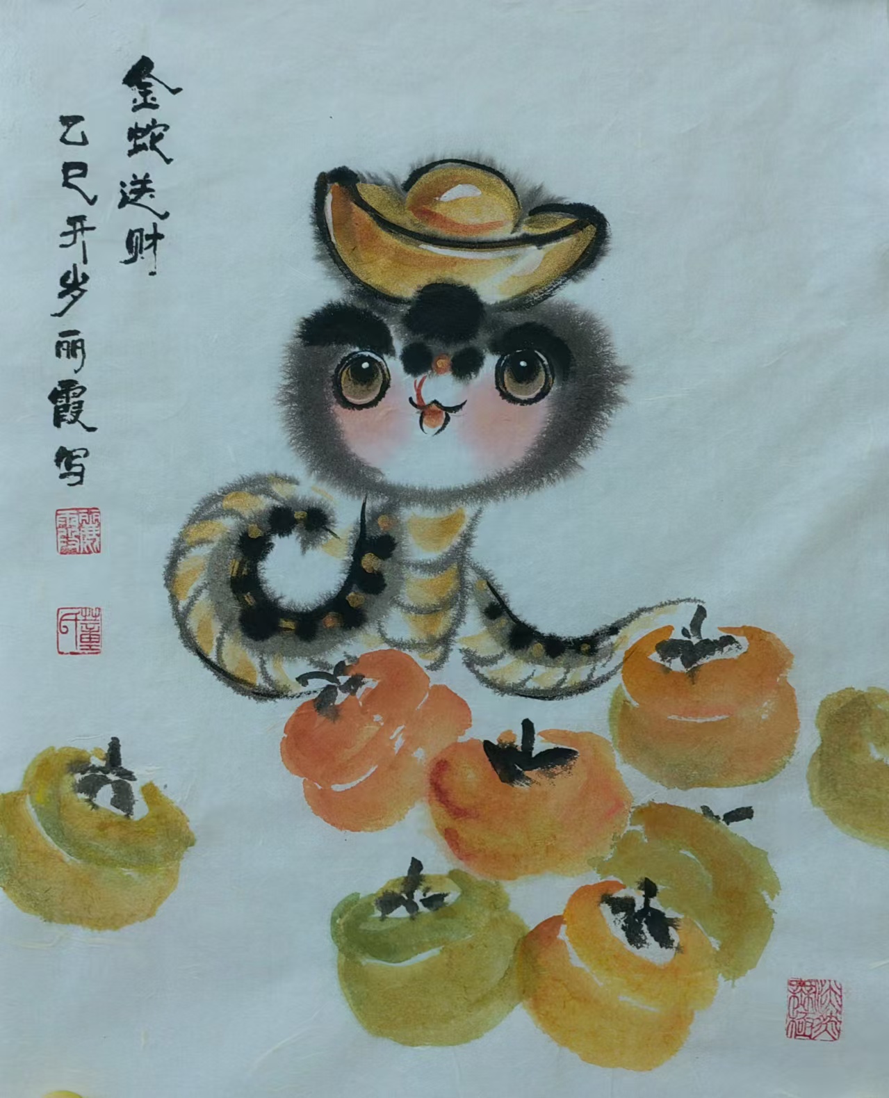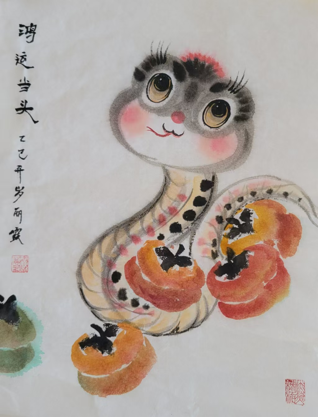 在中国传统文化里,蛇有着丰富寓意,它象征着灵动、智慧与神秘。生肖画作为中国传统绘画的重要形式,以独特艺术风格与表现力,深受大众喜爱。蛇在十二生肖中排行第六,承载着诸多吉祥内涵。“生肖文化是中华文化极具代表性的民俗文化之一,我每年都会画大量生肖画,今年从元旦至今,就画了约60幅蛇年生肖画,送给同事、亲戚和朋友。”董丽霞老师说道,她对中国优秀传统文化满怀热忱,每年都习惯以手绘新年礼物的方式,用中国画的写意技法,描绘当年生肖动物赠予亲友。