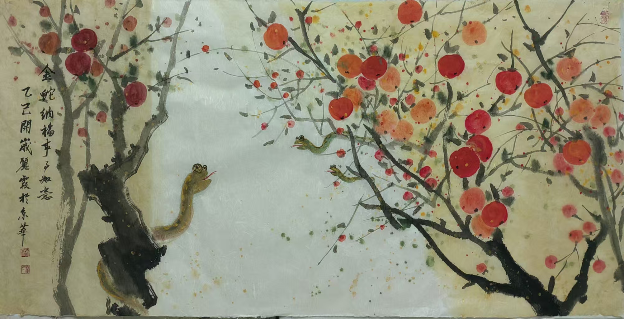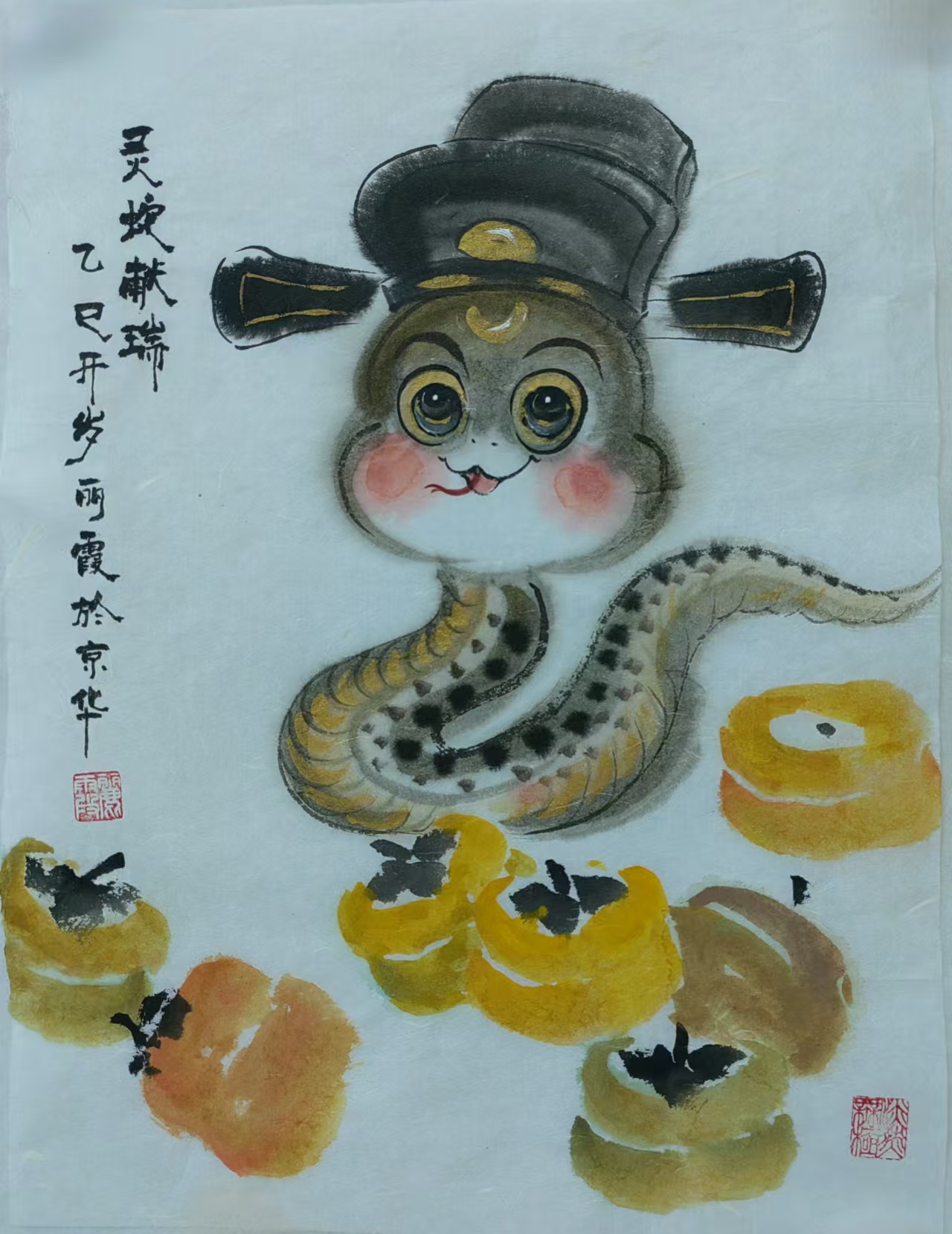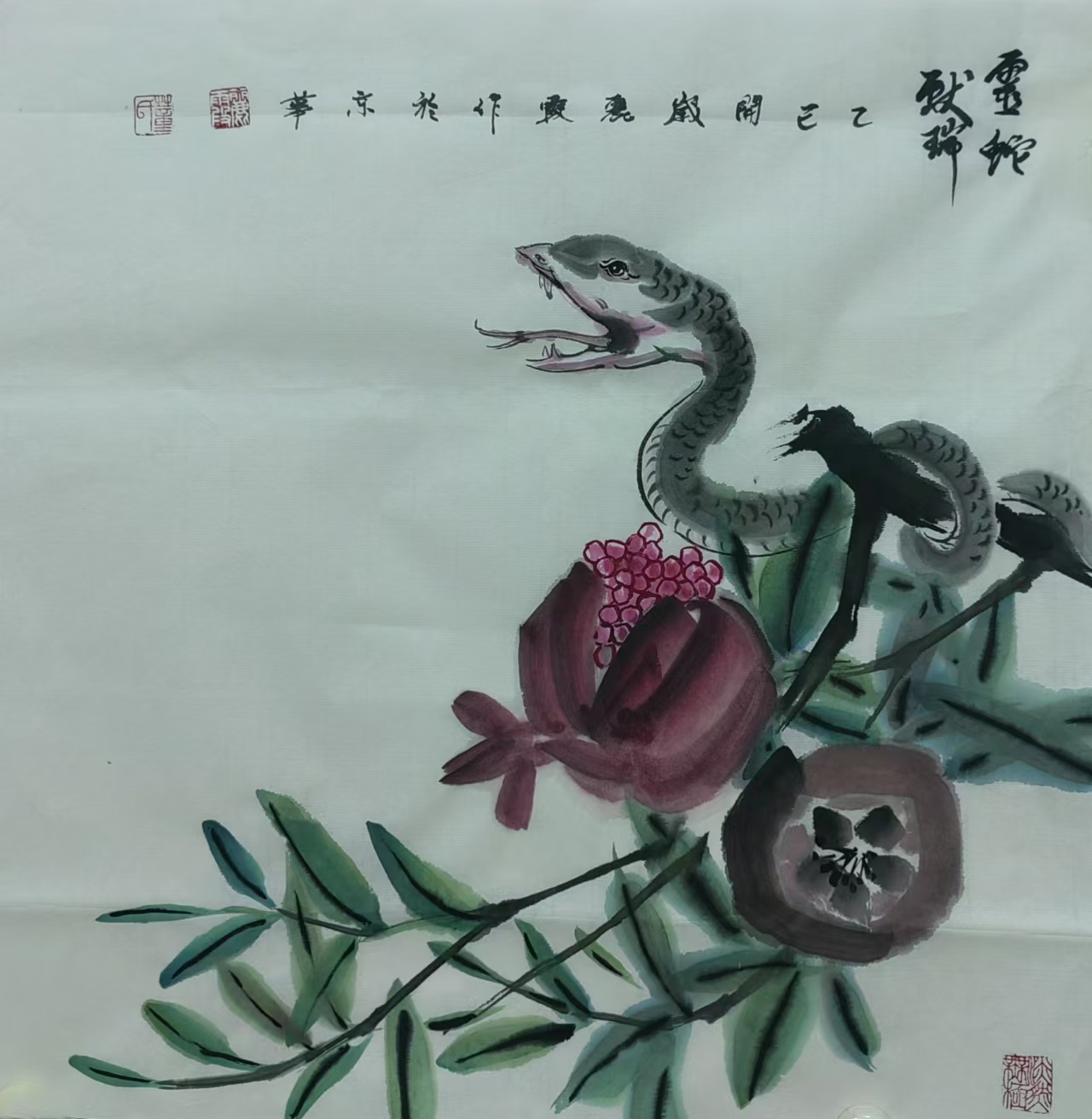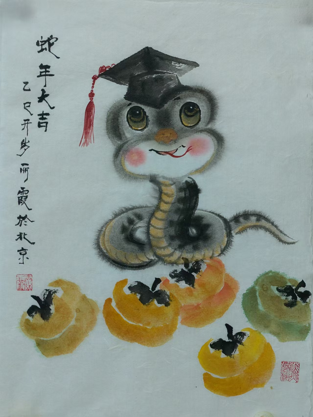 在中国传统文化里,蛇有着丰富寓意,它象征着灵动、智慧与神秘。生肖画作为中国传统绘画的重要形式,以独特艺术风格与表现力,深受大众喜爱。蛇在十二生肖中排行第六,承载着诸多吉祥内涵。“生肖文化是中华文化极具代表性的民俗文化之一,我每年都会画大量生肖画,今年从元旦至今,就画了约60幅蛇年生肖画,送给同事、亲戚和朋友。”董丽霞老师说道,她对中国优秀传统文化满怀热忱,每年都习惯以手绘新年礼物的方式,用中国画的写意技法,描绘当年生肖动物赠予亲友。