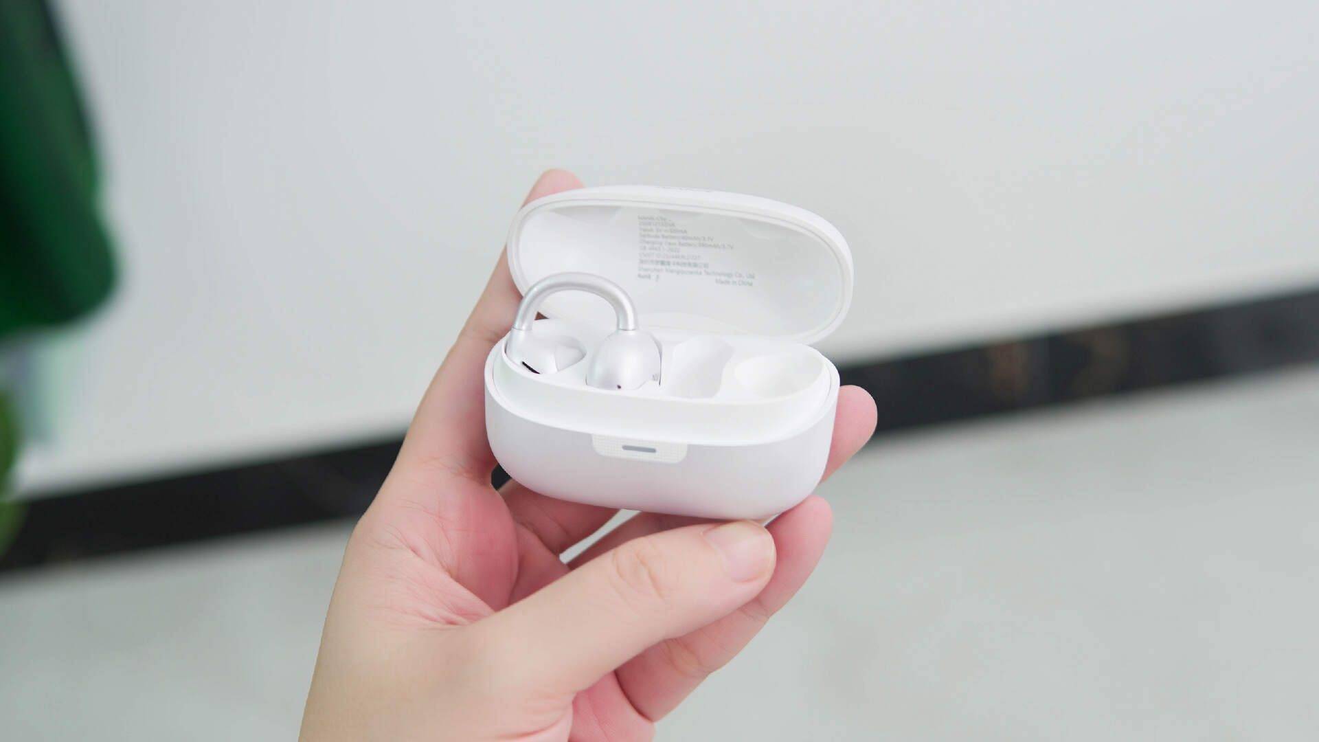 在佩戴体验上,这款耳机的佩戴表现很突出。单只耳机重量只有4.8g,戴在耳朵上几乎感觉不到负担。它采用了LevAir气囊结构,再加上ZeroG四点分压的耳夹设计,可以把压力均匀分散到耳廓不同位置。我自己连续佩戴四五个小时,用来听歌、刷视频或者办公,耳朵都没有出现明显的压迫感或者酸胀感。即使是在走路、通勤或者简单运动时,耳机也能稳稳固定住,不容易滑动。
