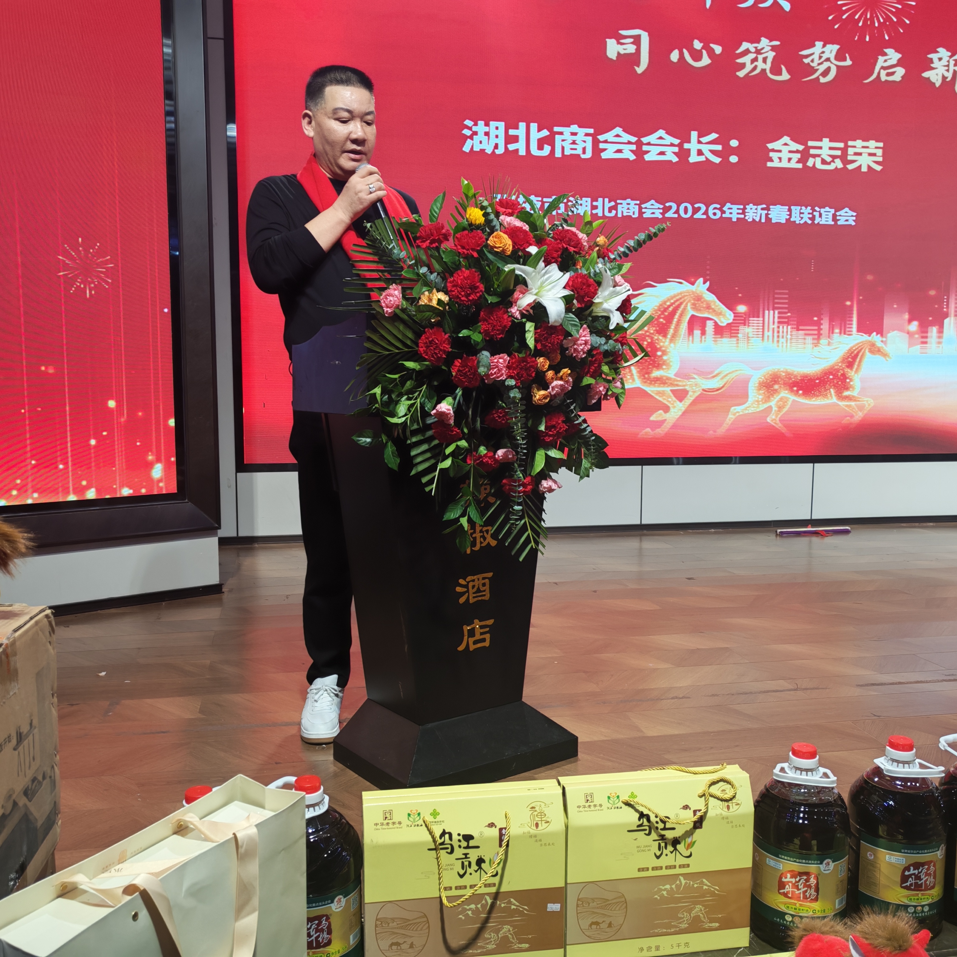 现场暖意融融,处处洋溢着新春的喜庆氛围。联谊会以荆楚聚首·龙马忆峥嵘”、“策马同行·商道话新篇”和“骏业腾飞·共绘新蓝图”三大篇章徐徐展开,尽显楚商风采与团结力量。
