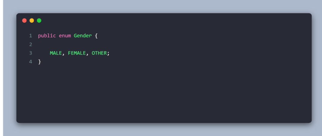 二、基本使用首先演示基本的用法,即做类型或状态的枚举值集合。下面给出性别的定义枚举: