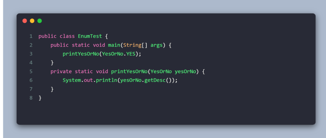 在枚举中增加重写的 getCode 方法后就不会再报错。下面给出一个测试例子,对应代码如下所示: