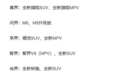 享界享界方面,今年将会推出一款SUV和一款MPV车型。全新SUV方面,官方称其为“很不一样”的一款车,并且有所透露可能为方盒子车型。