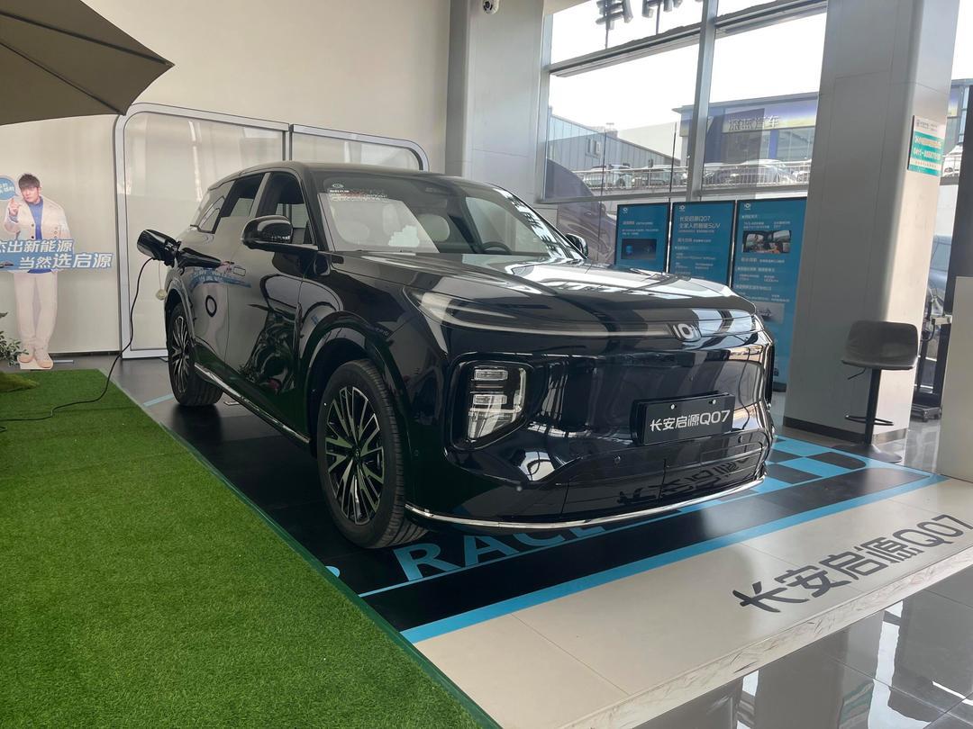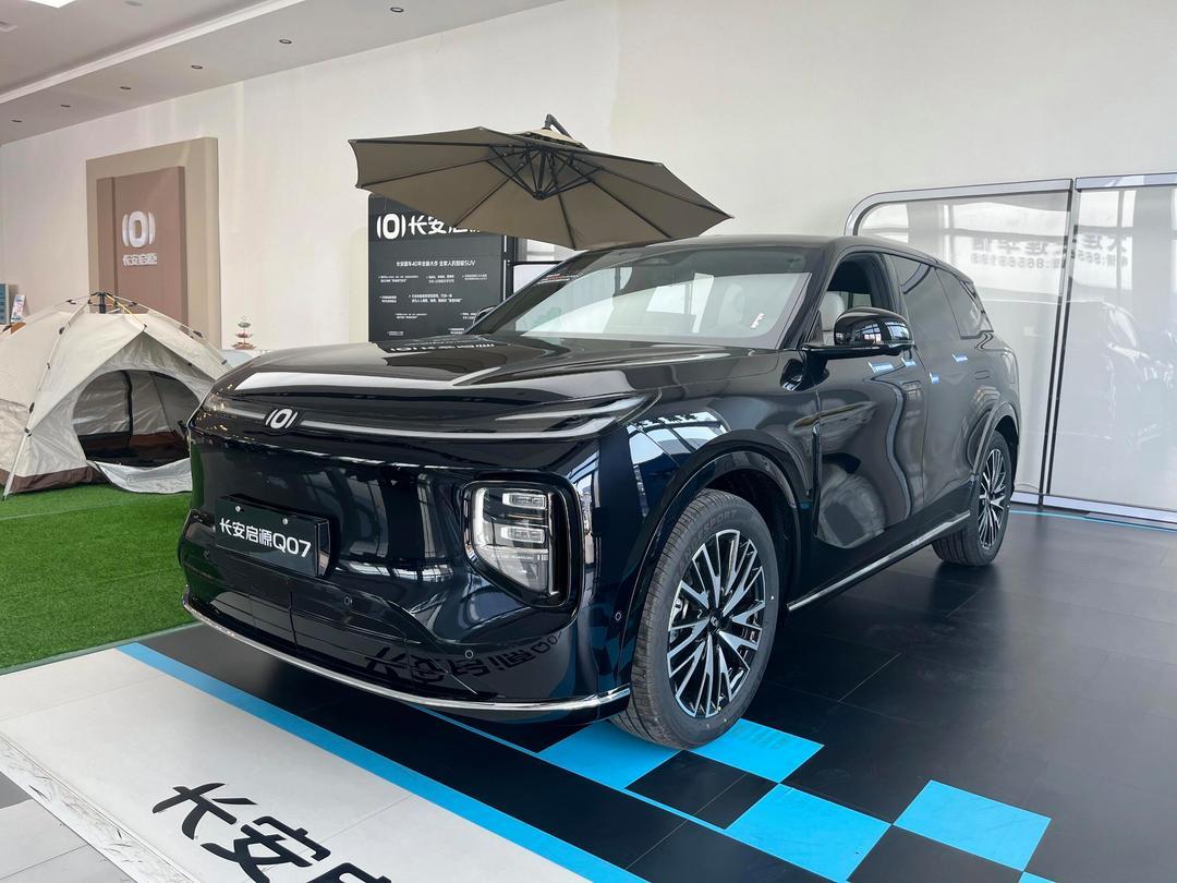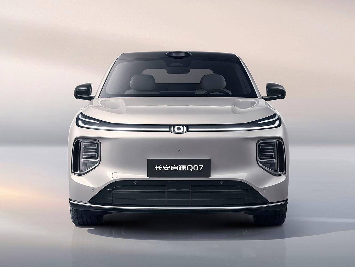 启源Q07一眼看上去就挺特别,前脸那种封闭式格栅设计,很有新能源那味儿。灯组是分体式结构,视觉冲击力挺强的,路上辨识度绝对够。侧面线条偏“硬朗风”,有点像小号理想L7那种感觉。