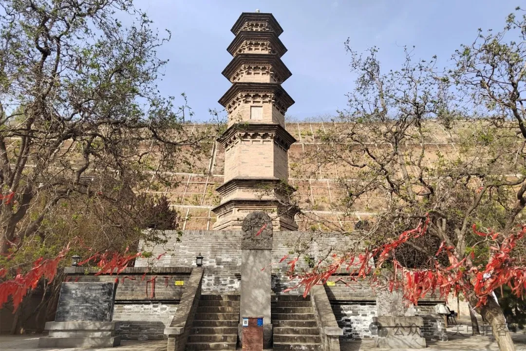 这座塔修建于唐贞观十五年(641年),为仿木结构楼阁式塔,平面呈方形,总共有七层,高度约23米,边长约5米。塔身叠涩出檐,南辟券门,内筑龛堂。抬头仰望,每层三间,四周装饰倚柱、阑额、斗拱、昂等。
