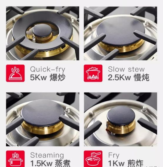 国外多用多眼燃气灶,是因为他们在燃气灶上做的食物主要以煎、炸、煮为主。这类烹饪方式,用小火力反而更容易掌握火候——当然,也有一些国家是因为天然气管道压力比较大,所以可以把燃气灶功率做得更高。