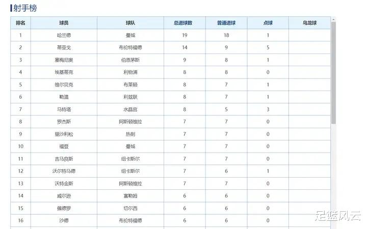 而且大家可以看一下射手榜,会发现中锋还是可以进球的,不是说不能进。哈兰德、蒂亚戈、勒温、马特塔他们也依然还能够破门,进球数也是排名前列。