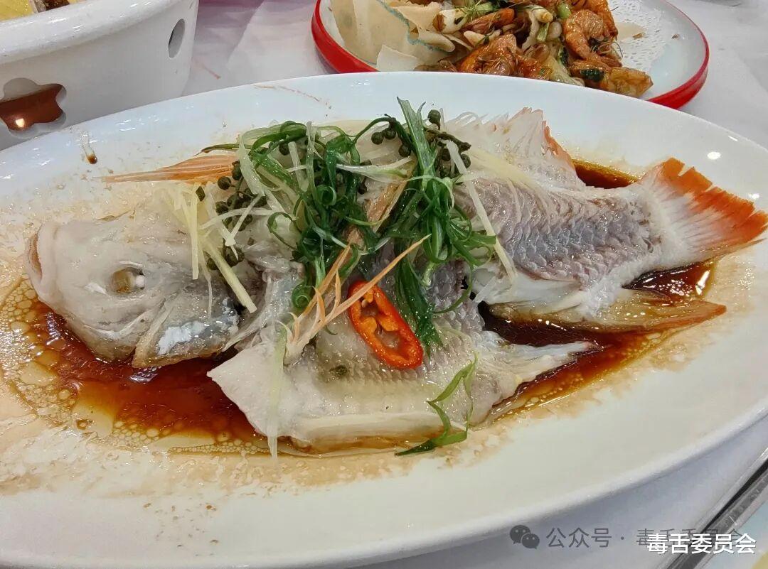 鲜花椒蒸星洲红。这道鲜花椒蒸星洲红蒸的火候还不错,肉质该嫩滑的地方嫩滑,该扎实的地方扎实。鱼的肉香味也是毫不含糊的,至于这星洲红本身就没什么鲜味和清甜味,也不能强求啊。不过遗憾的是那几枝花椒虽然出场了,但跟没出场没什么区别。这道上桌后,根本闻不到花椒那种醒神的香味,我甚至专门挑了放置花椒的鱼背来品尝,然而那花椒的气息居然如此的薄弱!?看来君荟的粤菜师傅对于花椒的使用还有进步空间啊?而那蒸鱼豉油大概就是一般的快消品吧?没也出彩的地方。