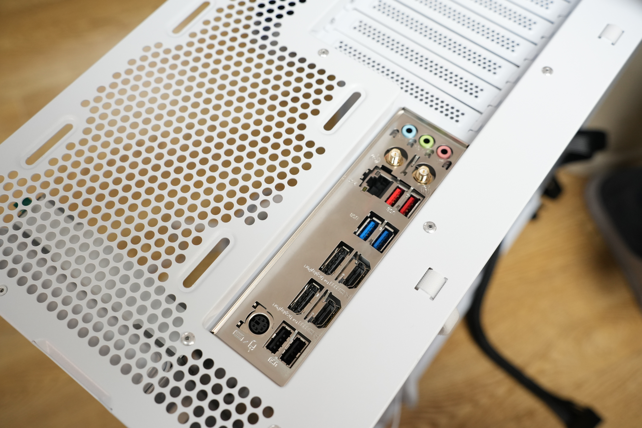 存储扩展方面,主板托盘背面的 2 个 2.5 英寸硬盘位与底部 2 个 3.5/2.5 英寸通用托架,满足 SSD 与机械硬盘的组合需求。I/O 面板的 USB-C 20Gbps 可以实现高速传输,配合 2 个 USB-A 接口,兼顾高速传输与日常外设连接。