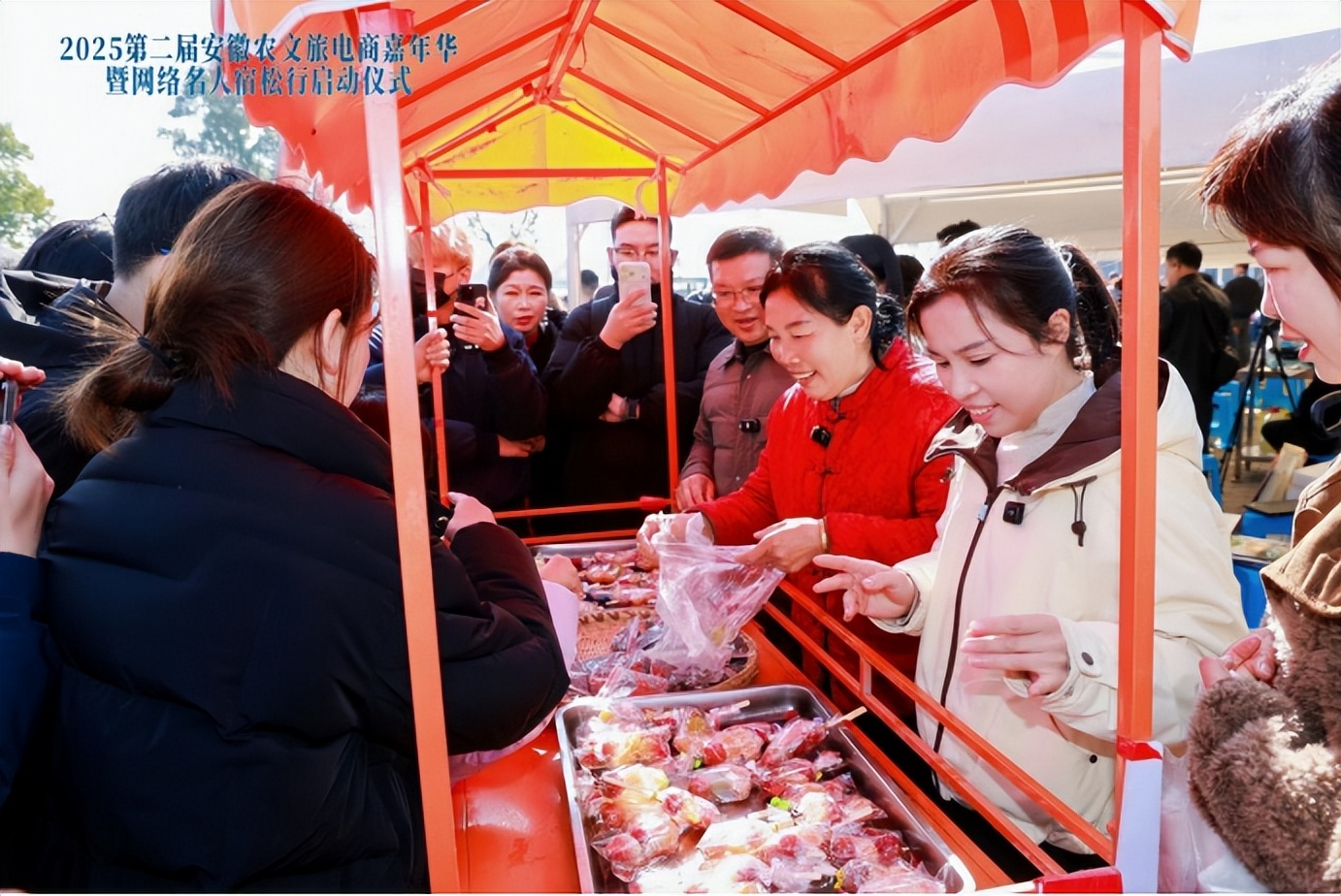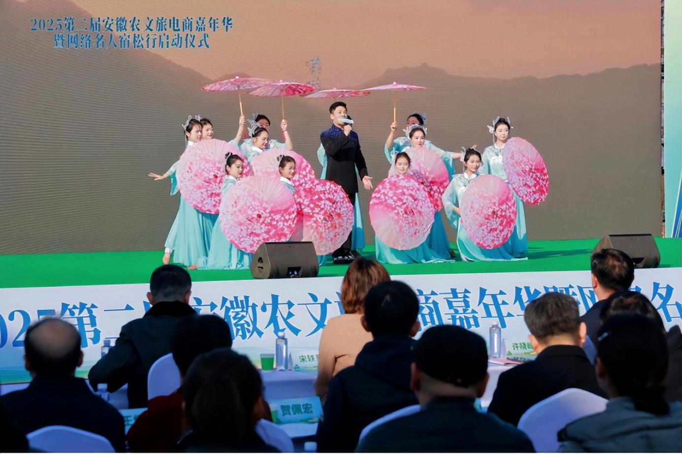 启动仪式现场亮点纷呈、热力十足。“滋味宿松”专题推介全方位、多角度呈现农文旅融合发展的丰硕成果;实时连线直击大湖冬捕的壮阔景象;本土艺术家倾情演绎黄梅戏、文南词等传统艺术,古老文脉与现代新风交相辉映、韵味悠长;“网络名人宿松行”授旗出征,用镜头捕捉宿松山水灵秀,用文字讲述宿松人文气韵,用直播展现宿松产业兴盛,为宿松优质产品搭建更广阔的“出圈”平台。