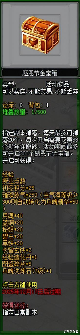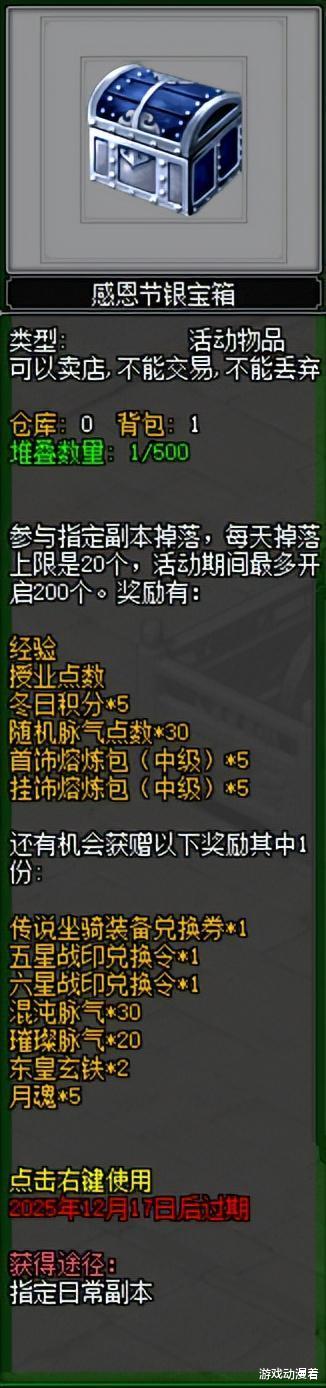 大侠通关副本、幻境等玩法会额外掉落感恩节银宝箱/金宝箱,每种宝箱每日最多获得20个,开启可得对应好礼。