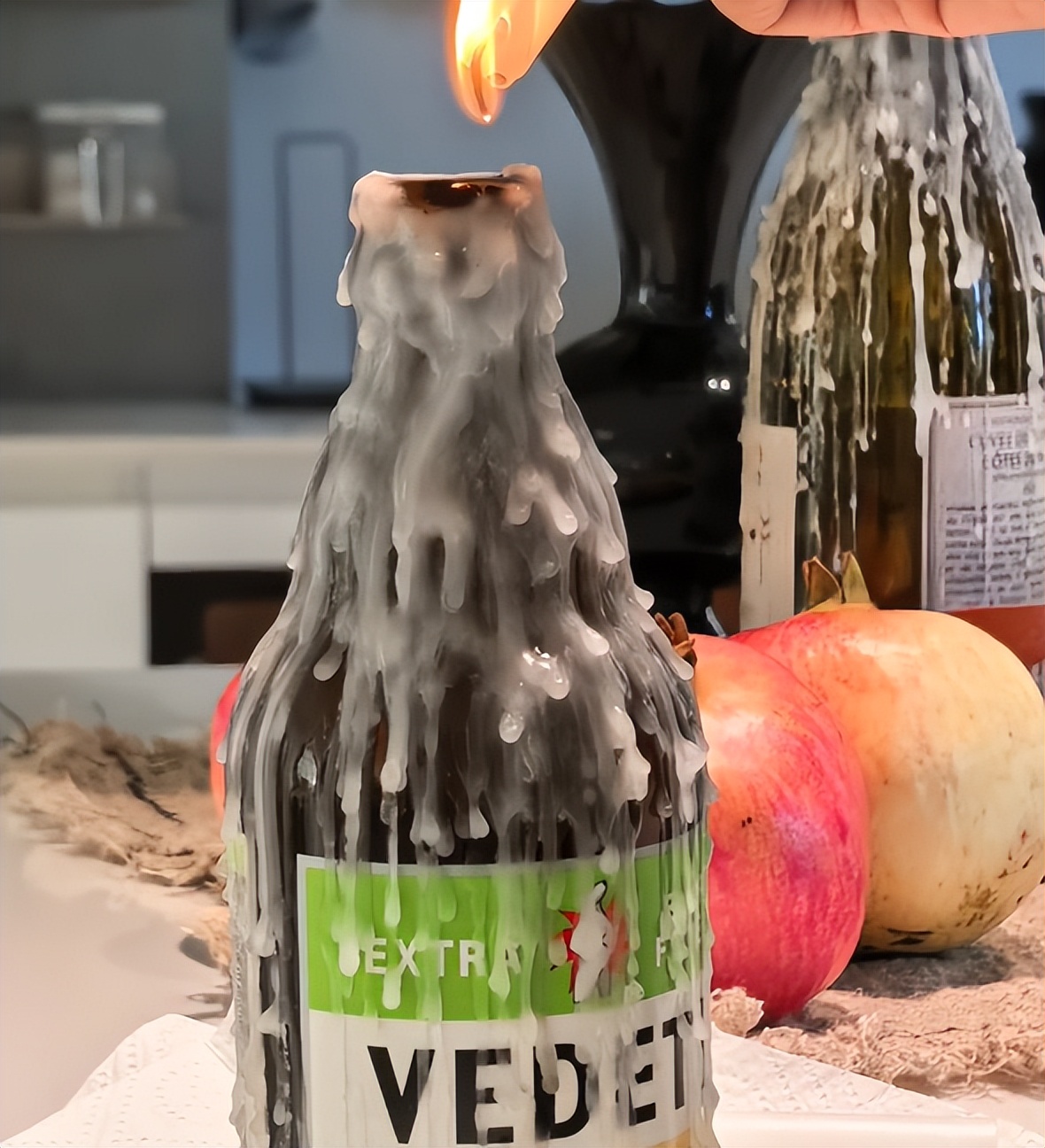 蜡烛燃烧的时候会滴蜡,蜡油往下滴,会滴在玻璃瓶上。