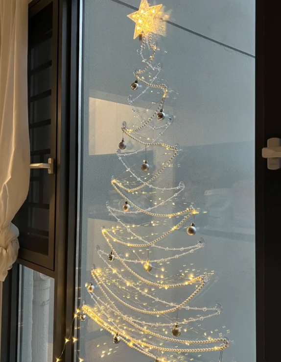 根本不需要花什么钱,就可以拥有一个好看的圣诞树,在镜子上diy一下就搞定了。