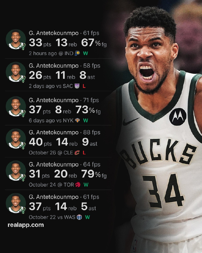 最后时刻,双方打成平手,字母哥跳投完成压哨绝杀。这也是字母哥生涯至今第二次命中压哨绝杀。赛季至今,字母哥出战6场比赛,场均依旧可以得到34分13.3篮板6.8助攻1抢断1盖帽的豪华数据,投篮命中率68.1%,三分球命中率60%。