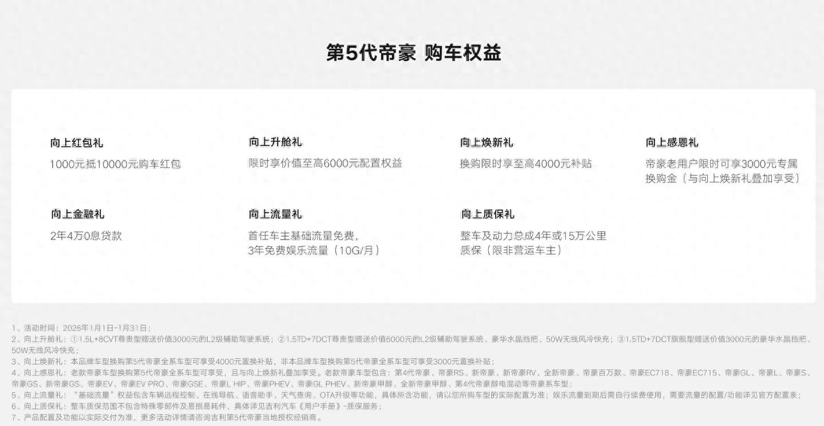 不仅如此,第五代帝豪全系标配 L2 级辅助驾驶系统,包含智能巡航、自动紧急制动等 10 项实用功能。Flyme Auto 智能座舱还能让你体验智能科技的魅力。继承第四代帝豪可靠品质的第五代帝豪,兼顾驾驶乐趣与使用成本,无疑是预算有限消费者的理想之选。