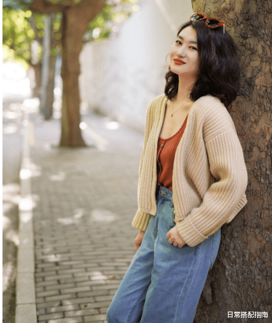 奶奶衫因为长短,厚薄等不同的特质,分为不同的款式,对于下身微胖的女生来说,可以直接选择短款的奶奶衫,长度在臀部中央,既起到遮挡的效果,也不好显得衣服太长,穿起来累赘,搭配蓝色的牛仔裤,这种休闲感的氛围就出来了。