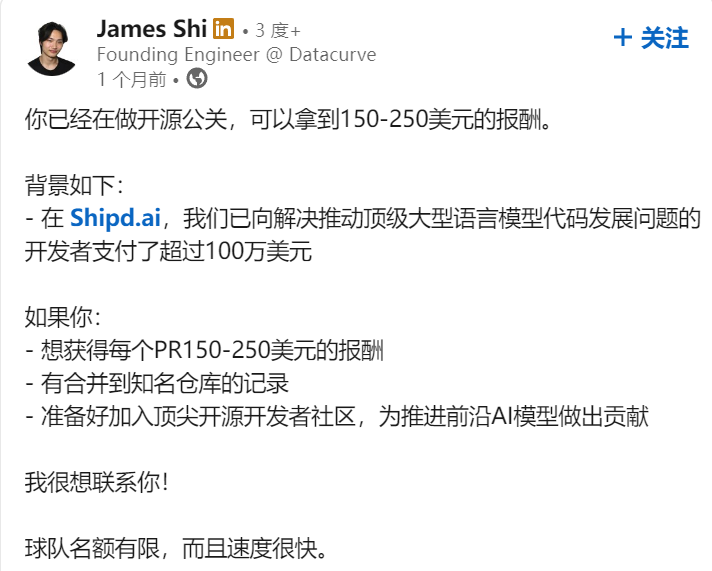 Datacurve团队规模不到10人,却能驱动一个超过万名工程师的社区。这种强烈不对称的组织结构,是它与传统外包型数据公司的最大差异:后者依赖线性扩张的人力体系,而Datacurve用的是互联网平台逻辑。