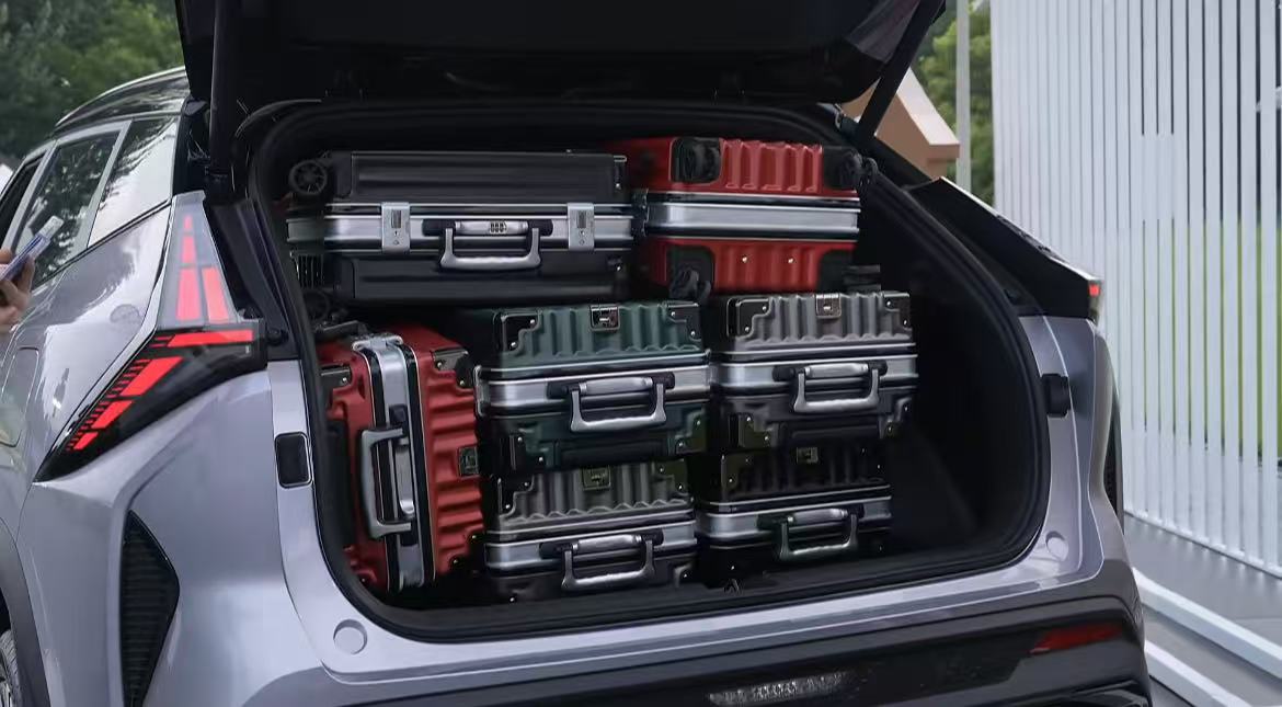 灵活储物是“能装下生活的魔法”。85.4%的得房率让后排同时坐三个成年人不挤,525mm超长坐垫托住大腿,长途乘坐不酸累。后备箱常规580L能装7个行李箱,75L隐藏格可藏孩子的零食和贵重物品,避免行车时滚动发出噪音。37处储物点各有分工:副驾手套箱分两层,上层放口罩、纸巾,下层收纳折叠伞;后门板双格凹槽,上层放保温杯,下层塞婴儿湿巾,伸手就够得着。