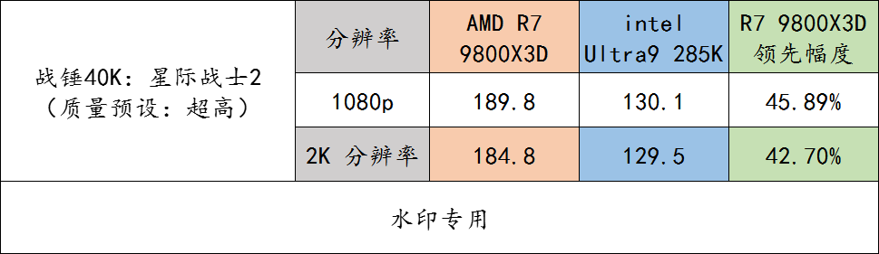 ▲ 《战锤 40000 星际战士 2》游戏实测。9800X3D 对于 3A 游戏的游戏流畅度提升非常出色,可以说是对 U9 285K 实现断层式的碾压。