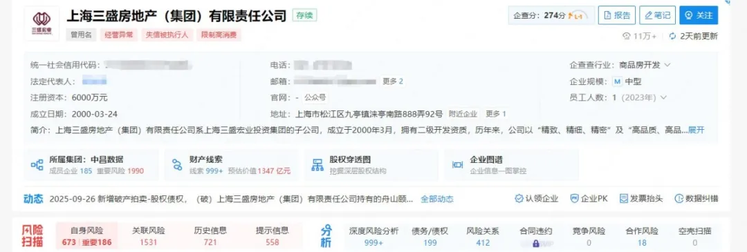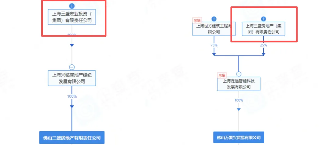 这些资产的权属公司,楼市君也特意查了查,发现除佛山颐景园外,其他两个公司的当前所属母公司均为上海三盛房地产。