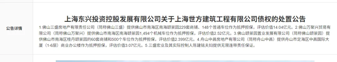 近日,阿里法拍上发布一则上海东兴投资控股发展有限公司关于上海世方建筑工程有限公司债权的处置公告。