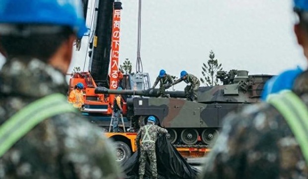 台湾当局花巨资从美国采购的38辆M1A2坦克和4辆M88A2装甲救济车抵达台岛,16日台军凌晨先是用民间拖板将坦克“下板”,紧接着运送至新竹湖口的装甲兵训练指挥部。
