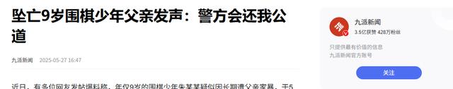 9岁,围棋业余6段,他原本就是同龄孩子中的天花板级别,前途也是一片光明,但在十天前的5月19日晚八点,他却选择用跳楼结束了自己的生命。