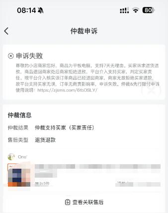 平台客服以证据不足为由,驳回了她的申诉,直接将货款退给了买家。