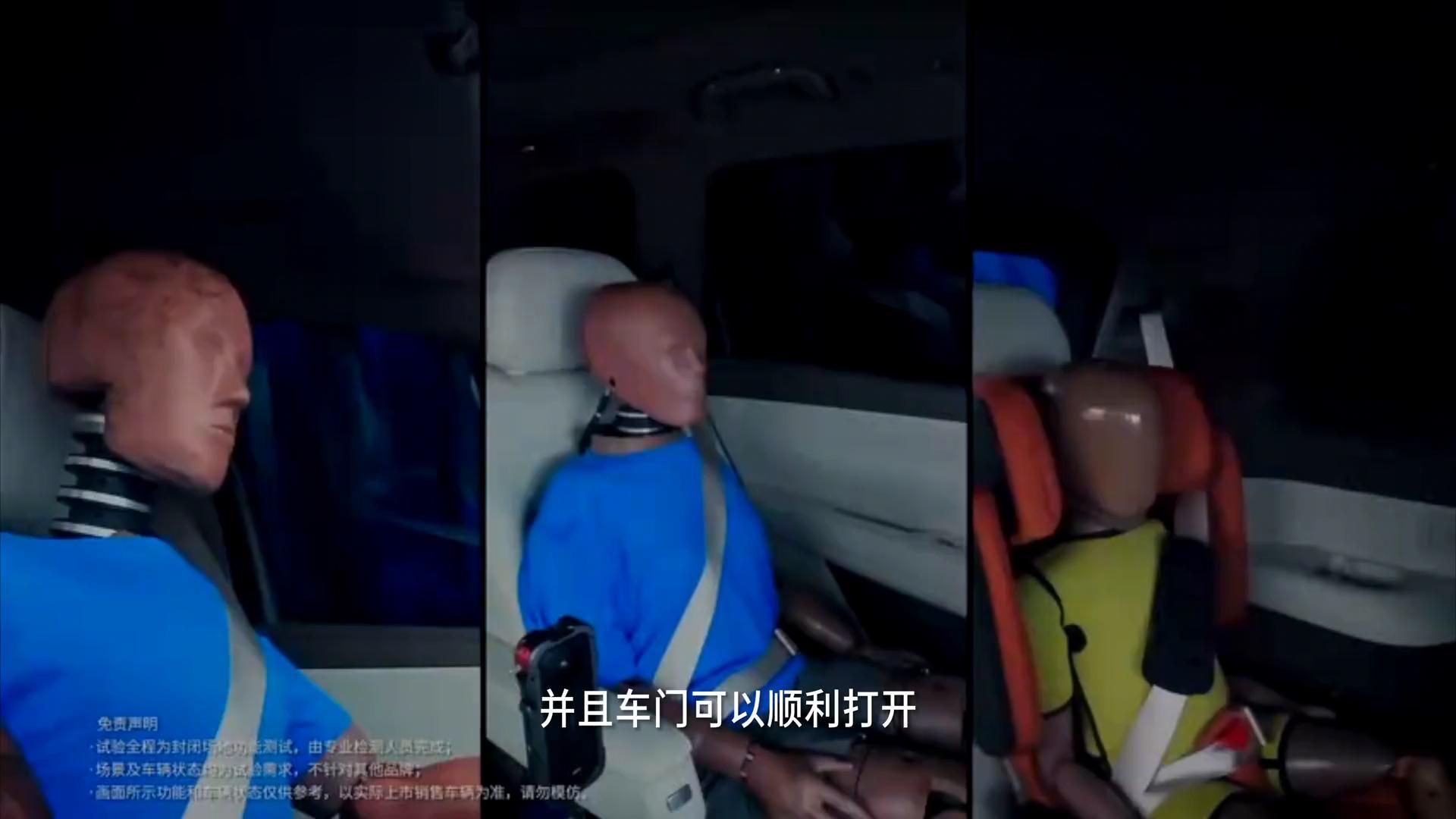 而且它的车身非常坚固,2000MPa高强度钢用料很足,可以扛得住25吨大货车泰山压顶,并且车门可以顺利打开。所以三大件部分,这台腾势N8L展示出了标杆级的水准。