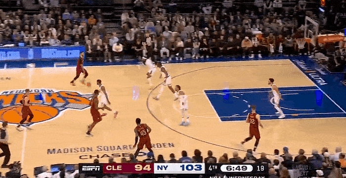 NBA常规赛,骑士对阵尼克斯的比赛正在进行中。