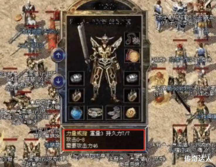 然后第二件装备就是力量戒指,这个首饰的外形设定就非常霸气符合战士职业的气场,并且还能增加战士职业作战所需要的攻击属性,还有一个被玩家们公认的隐藏属性,就是能够增加烈火技能的威力,手持裁决加上一对力量戒指,这种搭配的含金量只有当时的老玩家才懂吧。