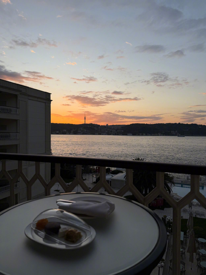 她拍下的这帧日落里,橙红的光浸着水面,餐盘随意摆在旁侧,建筑的轮廓裹着暮色的软。重庆的江边日落,是轮渡晃着碎光的暖;可这会土耳其的暮色里,水面的粼光、餐盘的闲适,连建筑的线条都像重庆江滩旁的旧楼,她没添雀跃的配文,只把这帧景摆出来,像撞见老熟人似的轻淡惊喜。
