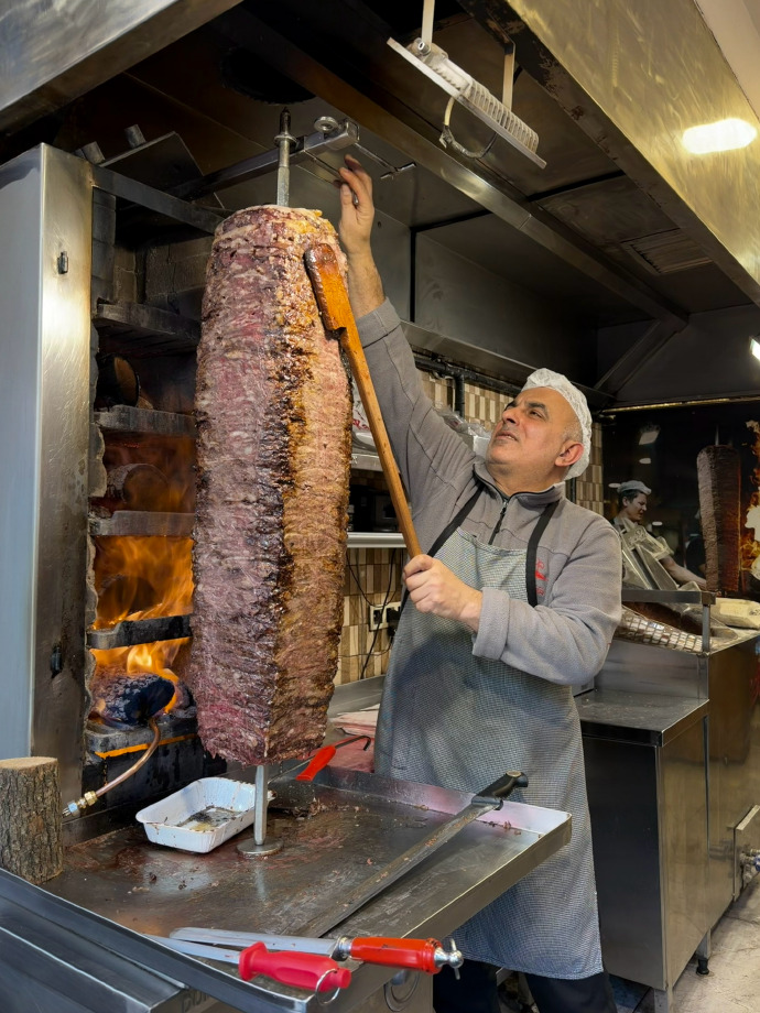 老人举着串得满当的烤肉,油光裹着烟火气,连铁架的锈迹都透着街头的糙。重庆的巷口也有这样的摊 —— 老人守着热灶,香味勾着路人的脚步;这会土耳其的街头,烤肉的香、老人的动作,都撞了重庆巷弄的熟络,她拍这帧时,大抵是闻着香就想起了重庆的烟火暖。