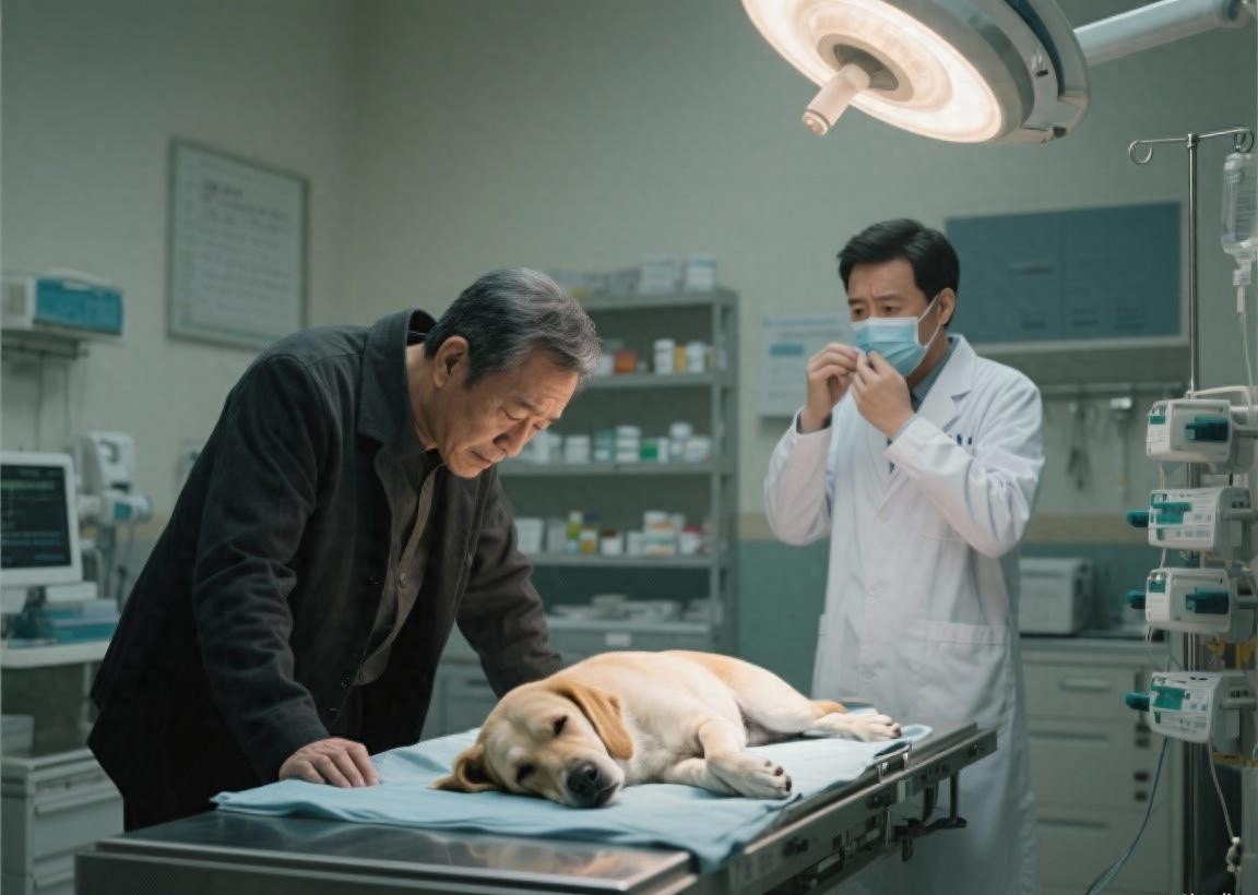 宠物医院的处置室里,灯光白得刺眼。