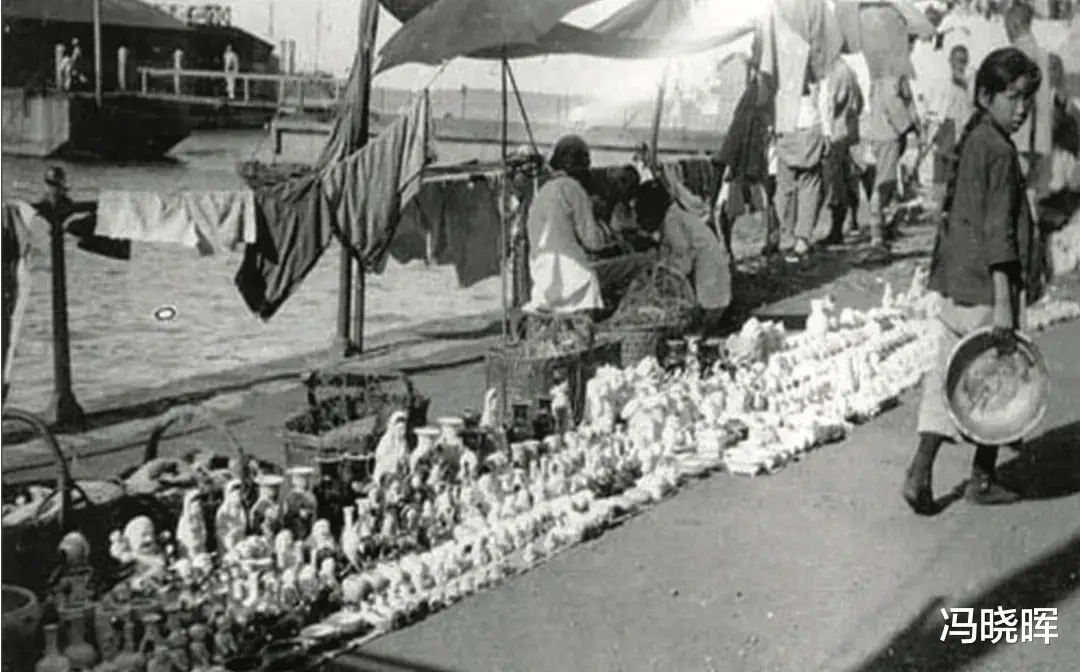 民国时期滨江码头贩卖瓷器地摊
