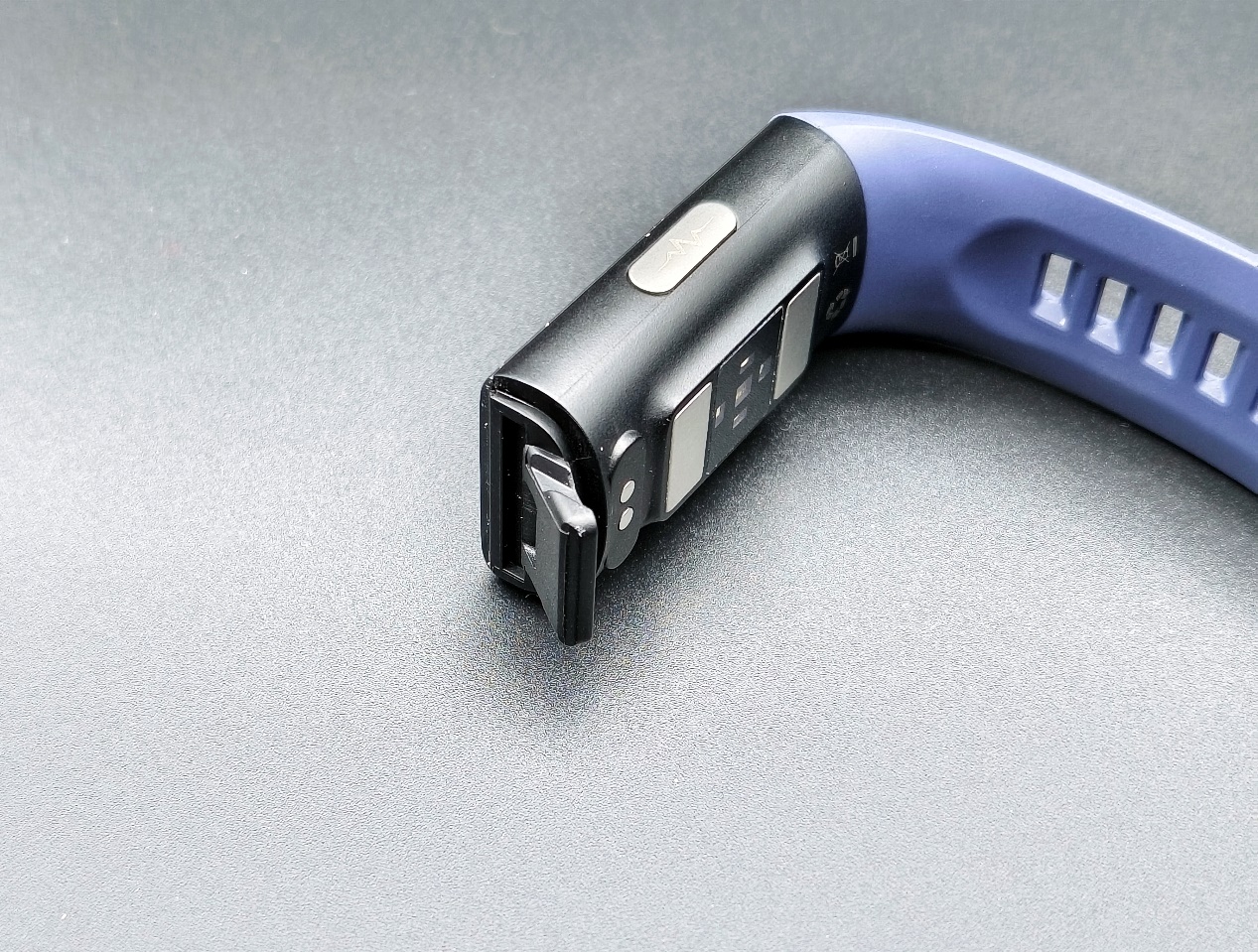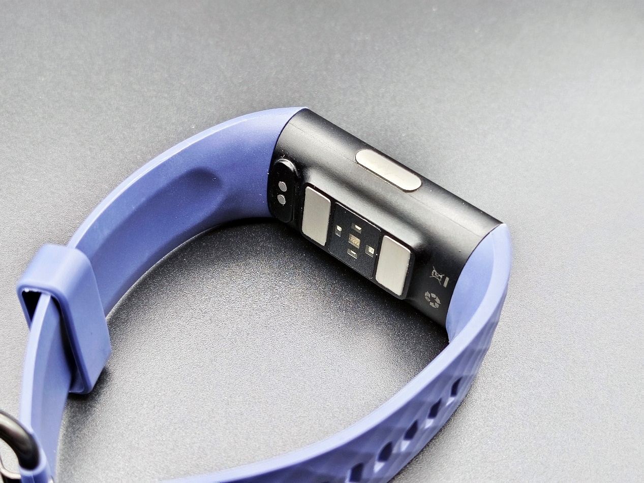 因为它的连接卡扣比较长,所以手环的支撑结构是自成一体的,主体部分可以被表带撑起来,除电极和传感器之外的部分不会紧紧的贴在皮肤上,留出了更多透气空间。它的佩戴体验接近无感,非常舒适。