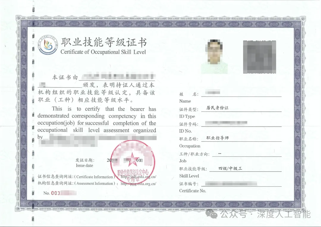 学习完本课程,并通过考试,将会获得由人力资源社会保障部门授权单位盖章颁发的《职业指导师(等级)》职业技能等级证书。