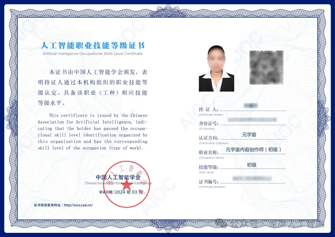 学习完本课程,并通过考试,将会获得由中国人工智能学会颁发的《元宇宙内容创作师(等级)》职业技能等级证书。
