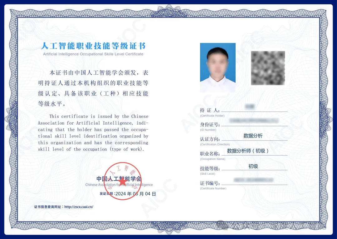 学习完本课程,并通过考试,将会获得由中国人工智能学会颁发的《数据分析师(等级)》职业技能等级证书。
