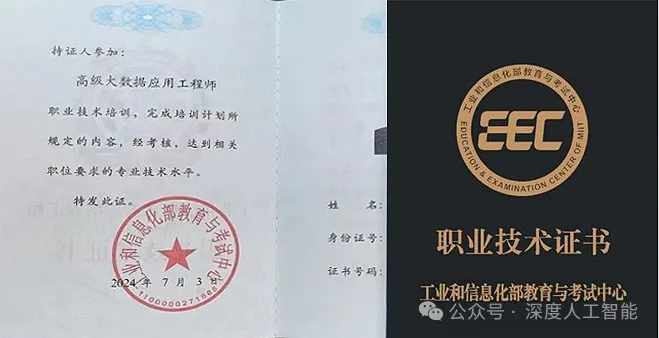 学习完本课程,并通过考试,将会获得由工业和信息化部教育与考试中心颁发的《高级大数据应用工程师》职业技术证书。
