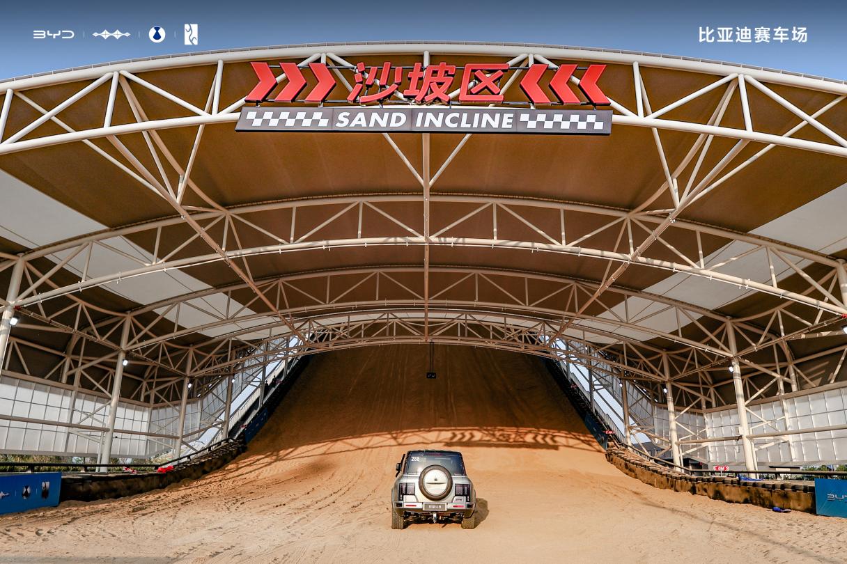 不同于传统赛车场的单一赛道设计,比亚迪将全国特色地形 “搬进” 赛车场,打造浮水航行、沙漠冲坡等特色地形,让用户无需长途跋涉,就能一站式打卡极致场景。