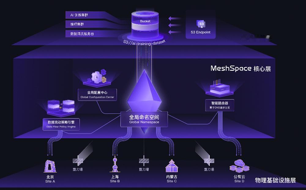 MeshSpace是面向EB级数据的全局非结构化数据平台。通过统一的全局命名空间,MeshSpace实现了跨地域、跨异构存储的数据流动与统一纳管。