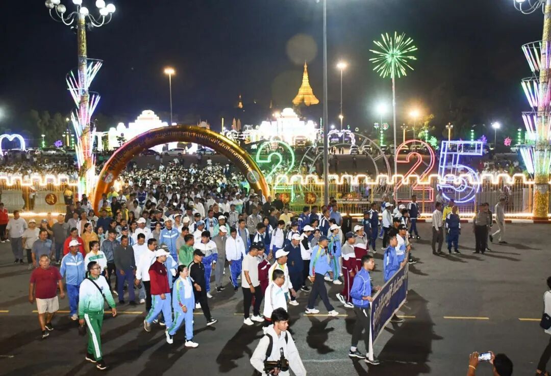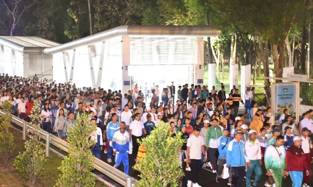 12月6日早上,2025年十二月大众集体步行活动在缅甸仰光市举行。体育与青年事务部、酒店与旅游部部长Jeng Phang 诺当、仰光省首席部长吴索登及相关负责人,以及数千名民众共同参加了此次活动。