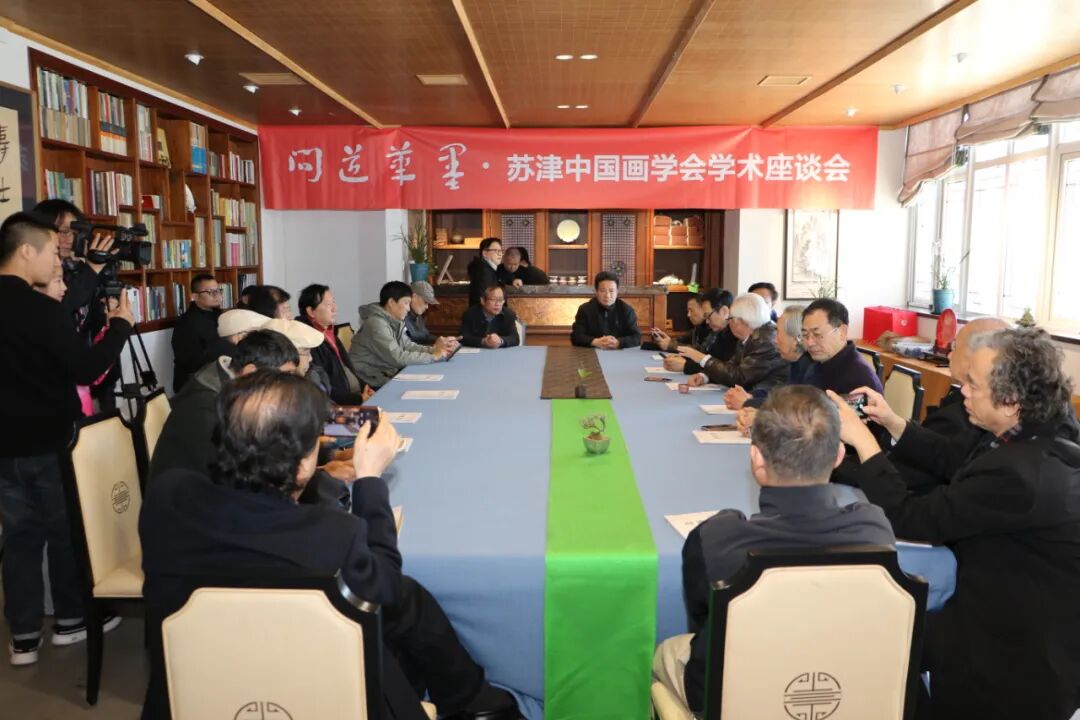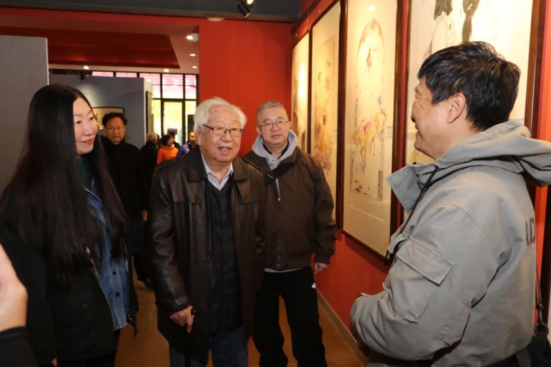 开幕式现场名家云集、群贤毕至,艺术界与文化界重磅嘉宾齐聚一堂。江苏省中国画学会顾问、中国画学会创会副会长兼秘书长孙克,江苏省中国画学会顾问、巴黎中国文化中心原主任殷福,江苏省中国画学会创会会长、中国画学会创会副会长高云,天津市中国画学会会长、天津美术学院教授霍春阳,以及江苏省中国画学会名誉会长韩显红、监事长王强、会长翟优等百余位嘉宾出席,共同见证这场南北艺术交融的文化盛事。开幕式由天津市中国画学会副会长兼秘书长、天津人民美术出版社社长杨惠东主持。开幕式后举行了学术座谈会。
