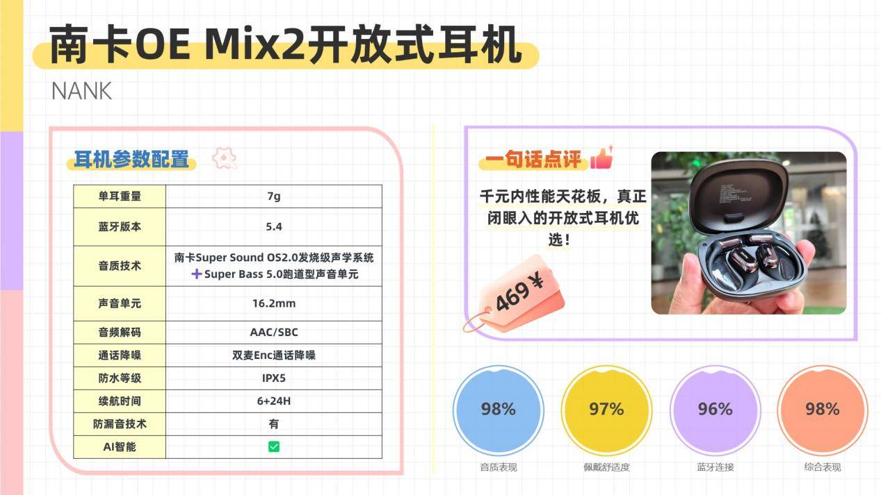 作为开放式耳机领域的开创者与技术引领者,南卡在开放式声学研发上已积累了超过13年的深厚经验。凭借AI全能助手、零压力零感佩戴体验、发烧级音质以及旗舰级硬件配置,其OE Pro2长期稳居国产开放式耳机市场的顶尖梯队,成为众多用户心中的首选。