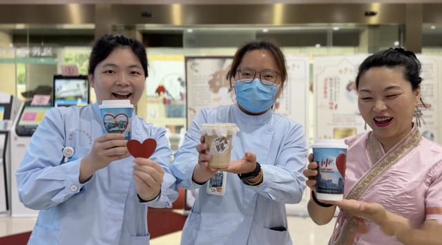 5月12日上午,黄浦融媒“咖味十足”线下体验点的工作人员将一杯杯热乎乎的“融小牛”咖啡,分别送到了老西门街道、打浦桥街道社区卫生中心当班护士的手中,以表慰问和敬意!