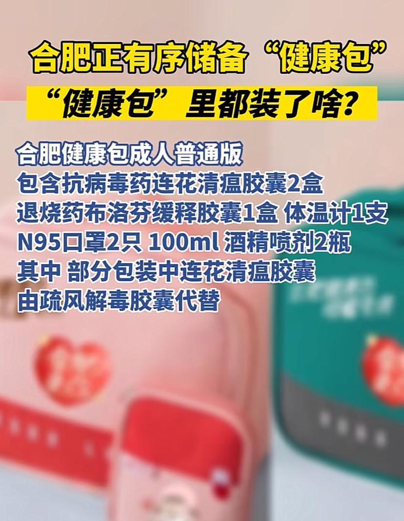 12月8日,有消息称安徽合肥正在积极储备健康包,用于经评估适合居家治疗的患者,免费发放。