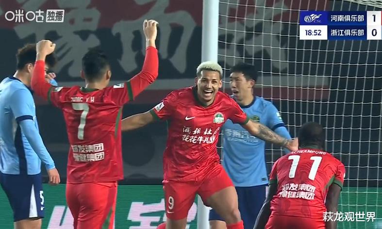 第18分钟,卡多索左路长途奔袭杀入禁区打门被扑,李提香不慎自摆乌龙,河南队1-0!