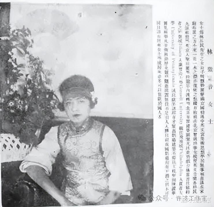 此照片刊登在当时的国内报纸上,作者小可,文章标题为《黄金国家之留学少年生活谈——徽音女士之游美心影录》。